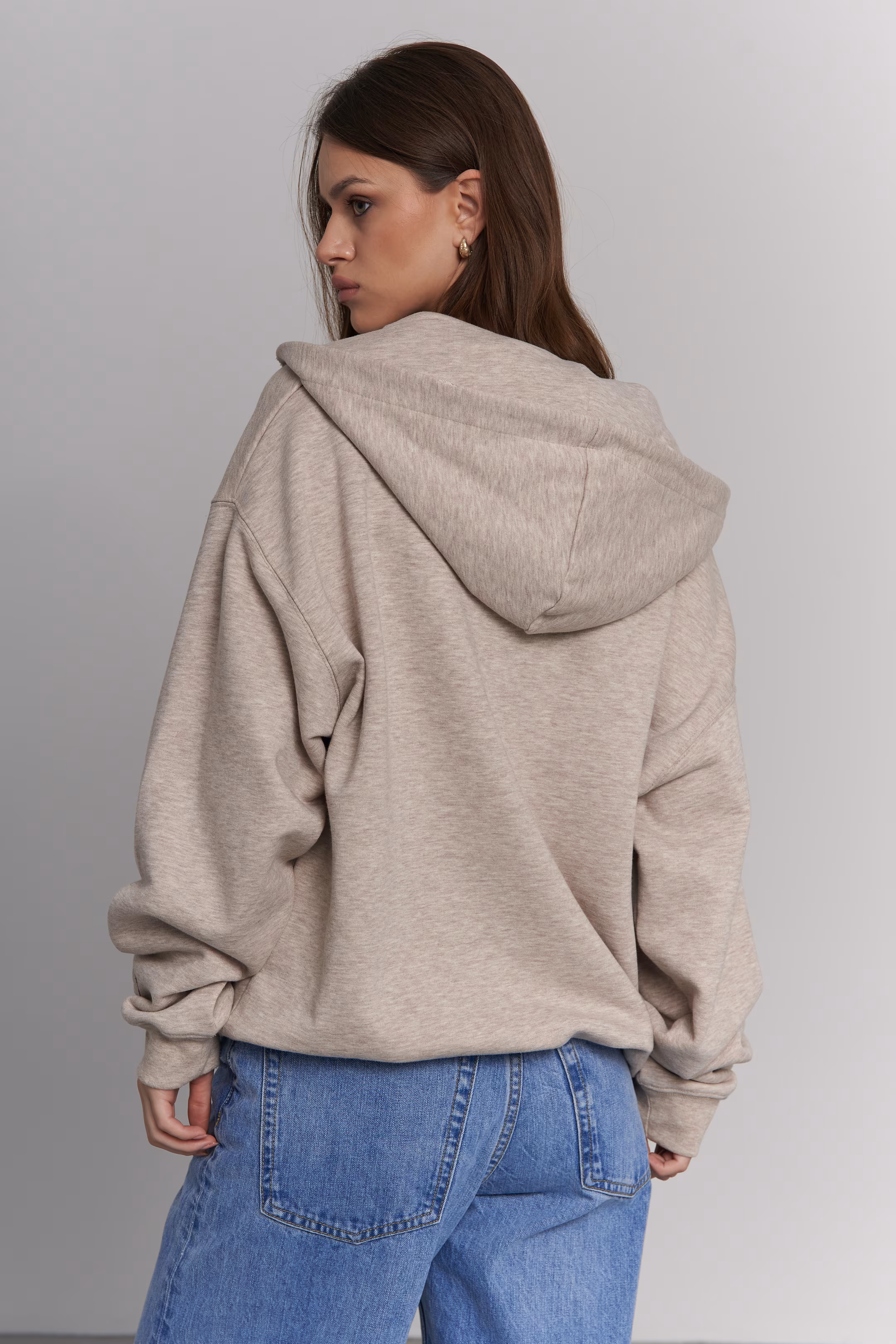 Oversized zip-up hoodie in dark gray. Full front zip. Hood. Ribbed cuffs and hem. No print. 100% cotton. Model measurements: Height 174 cm Chest 88 cm Waist 60 cm Hips 94 cm