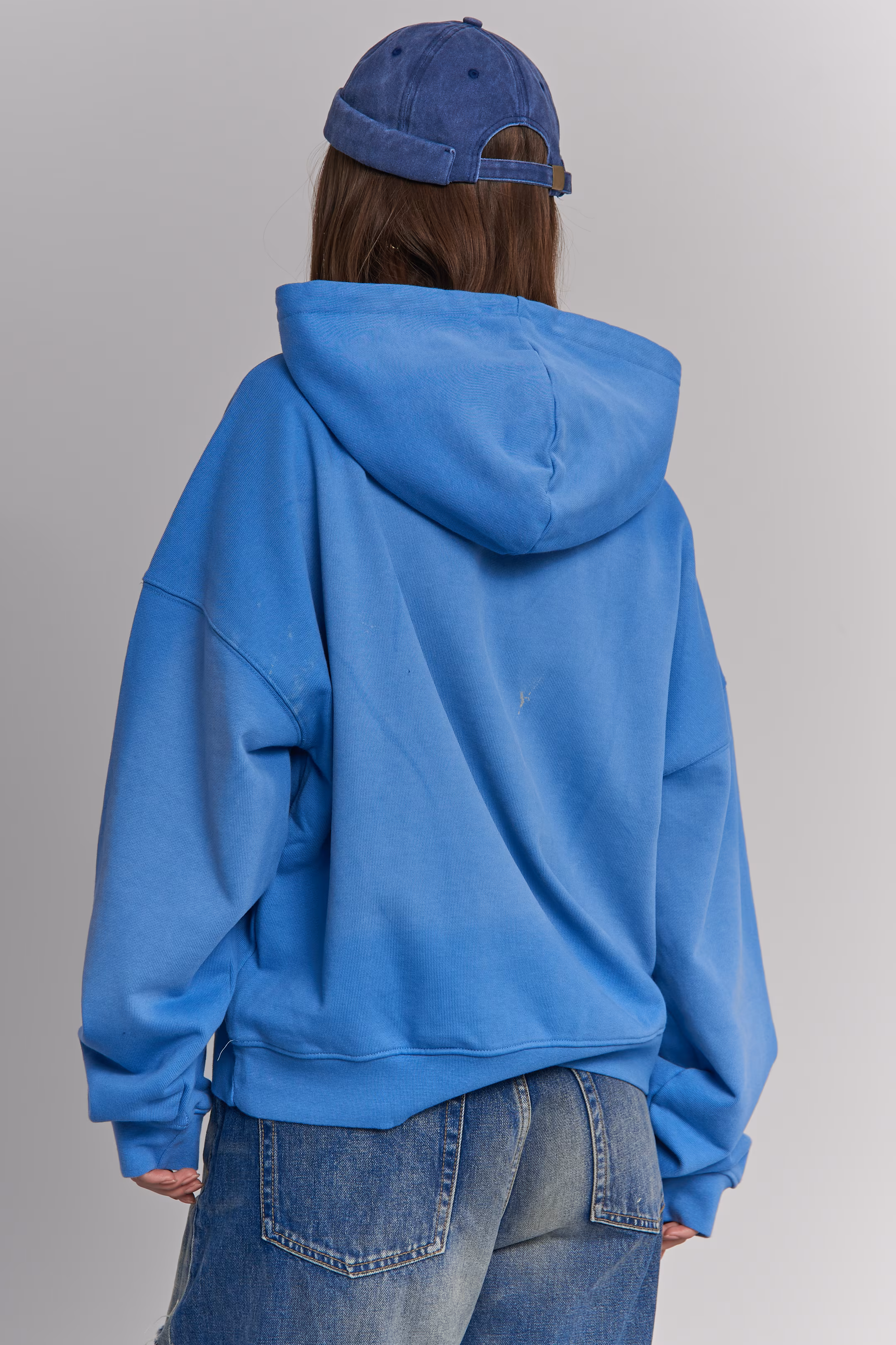 Oversized pullover hoodie in glaucous. Hood, kangaroo pocket. Ribbed cuffs and hem. 100% cotton. Model measurements: Height 174 cm Chest 88 cm Waist 60 cm Hips 94 cm