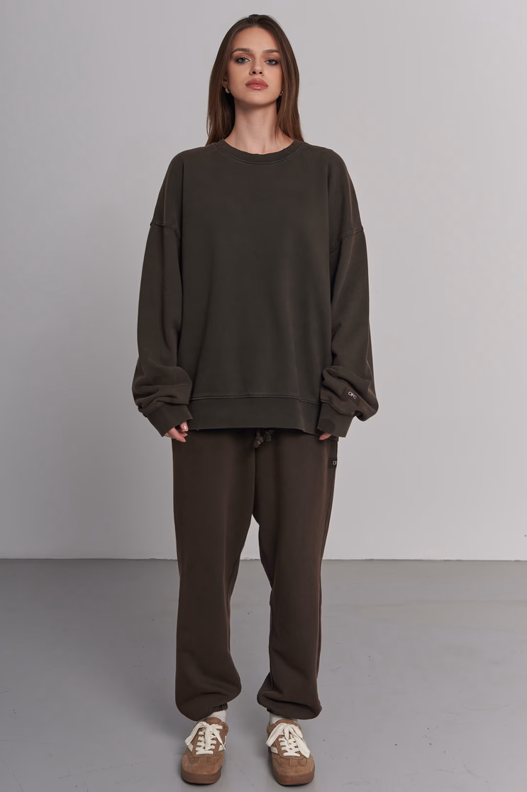 Oversized crewneck sweatshirt in a taupe hue. Crafted from heavyweight fabric with a soft finish. Features dropped shoulders, ribbed neckline, and cuffs for a relaxed silhouette. 100% cotton.