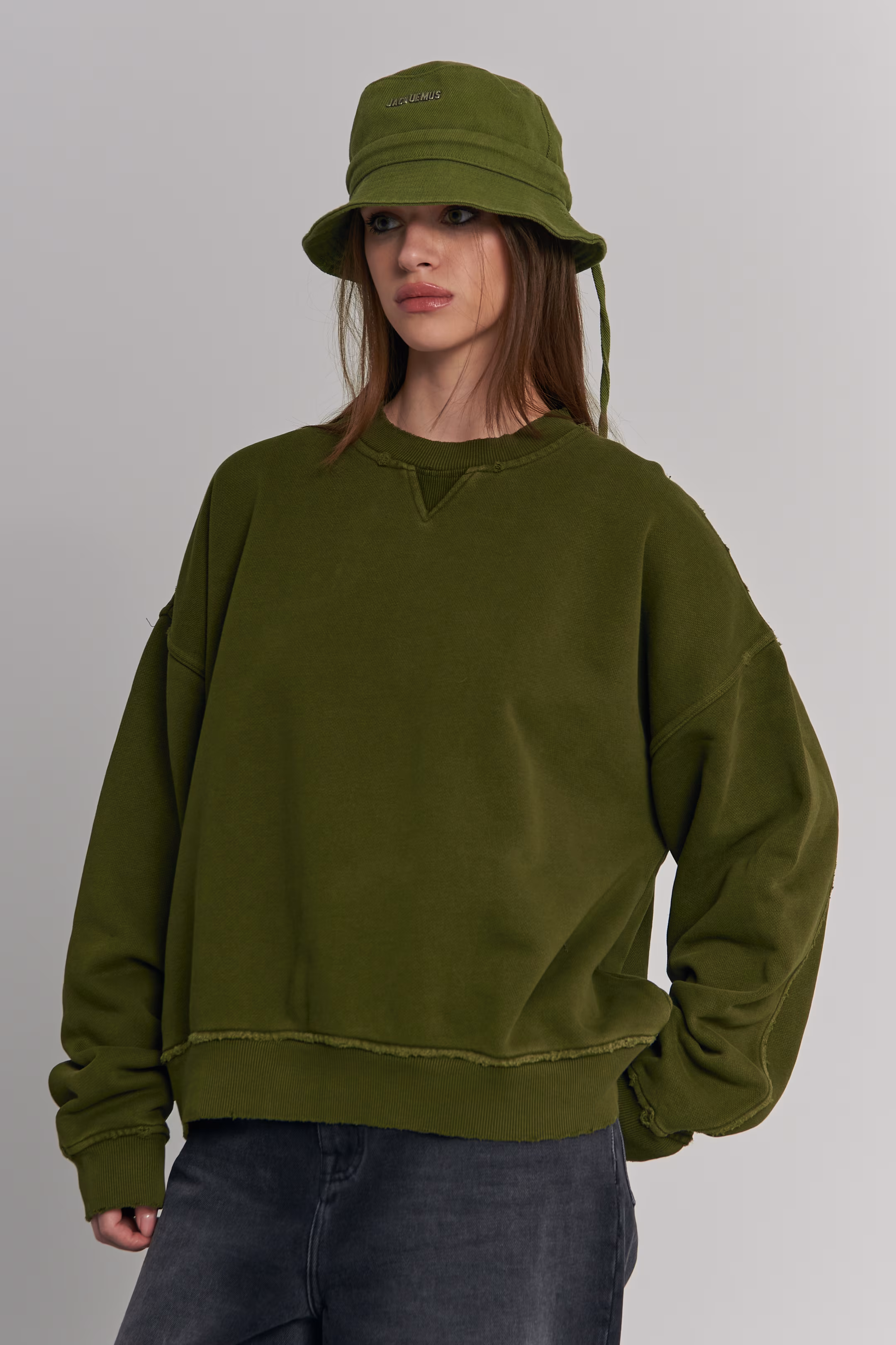 Oversized sweatshirt in army green. Ribbed round neckline with V-stitch detail. Ribbed cuffs and hem. 100% cotton. Model measurements: Height 174 cm Chest 88 cm Waist 60 cm Hips 94 cm