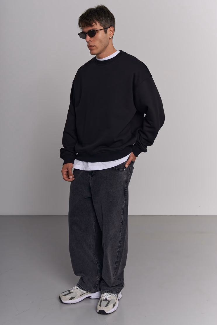 Oversized crewneck sweatshirt in licorice. No print. Crew neck. Ribbed cuffs and hem. 100% cotton. Model measurements: Height 185 cm Chest 100 cm Waist 84 cm Hips 97 cm
