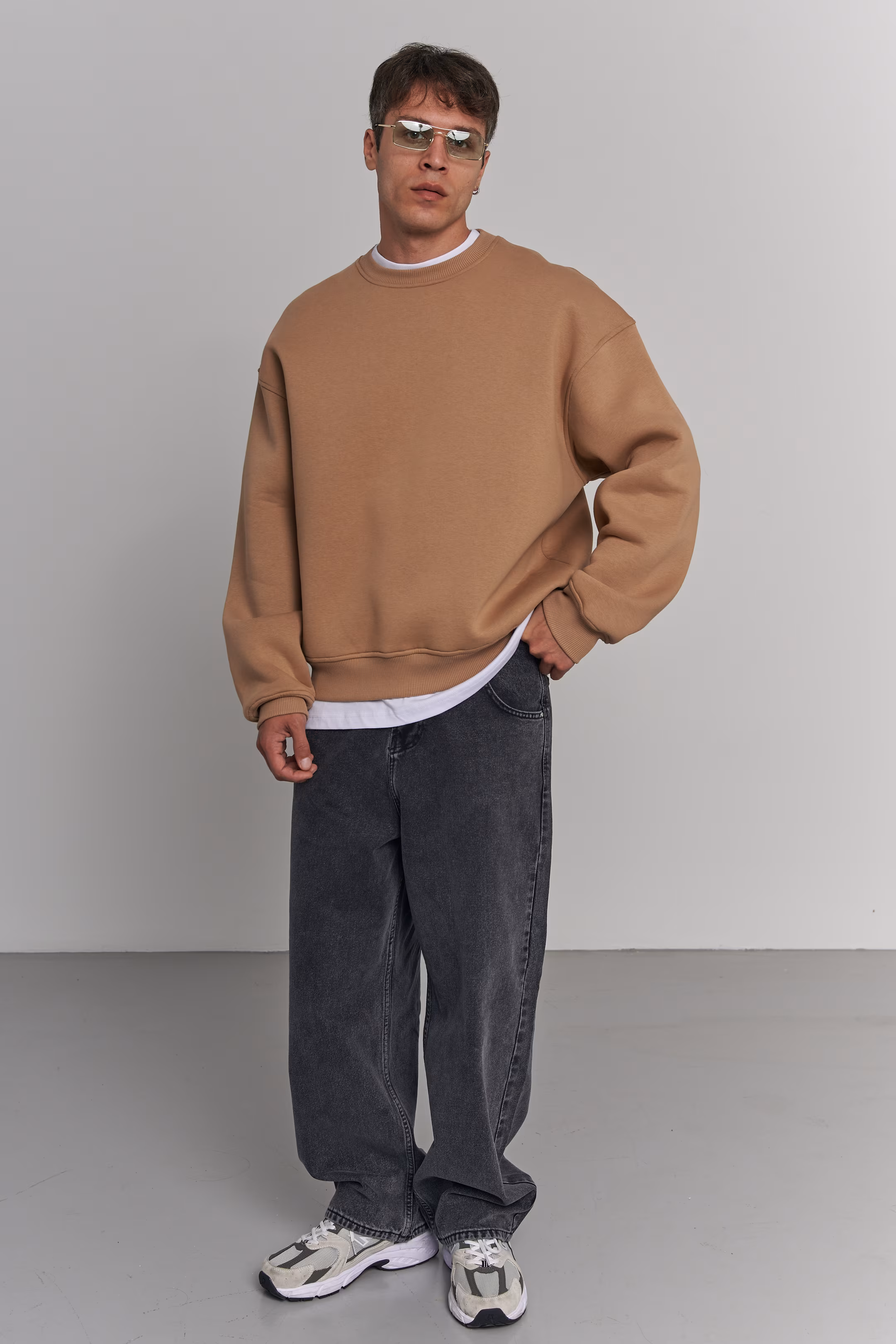 Oversized crewneck sweatshirt in mocha. No print. Crew neck. Ribbed cuffs and hem. 100% cotton. Model measurements: Height 185 cm Chest 100 cm Waist 84 cm Hips 97 cm