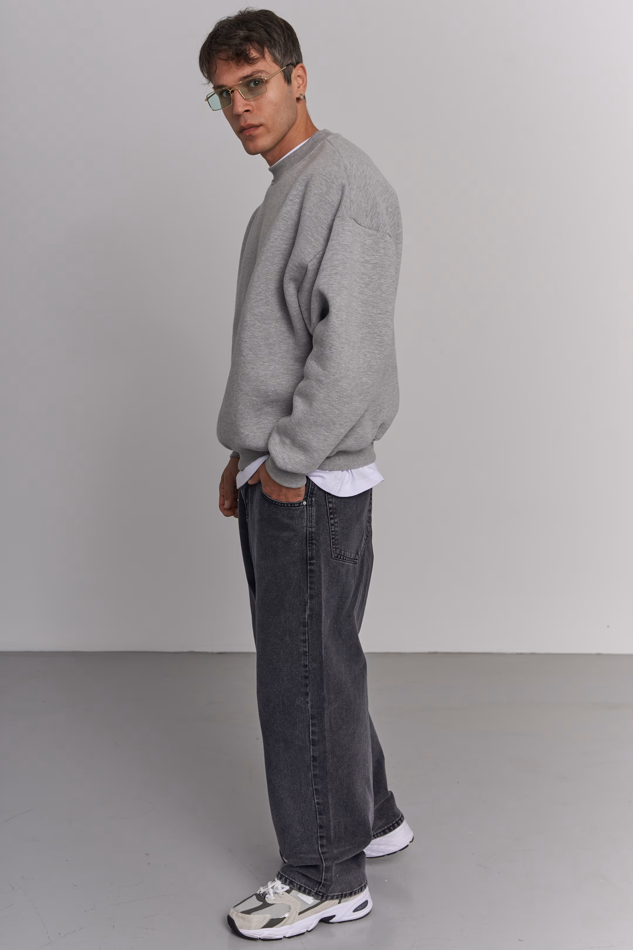 Oversized crewneck sweatshirt in smoke. No print. Crew neck. Ribbed cuffs and hem. 100% cotton. Model measurements: Height 185 cm Chest 100 cm Waist 84 cm Hips 97 cm
