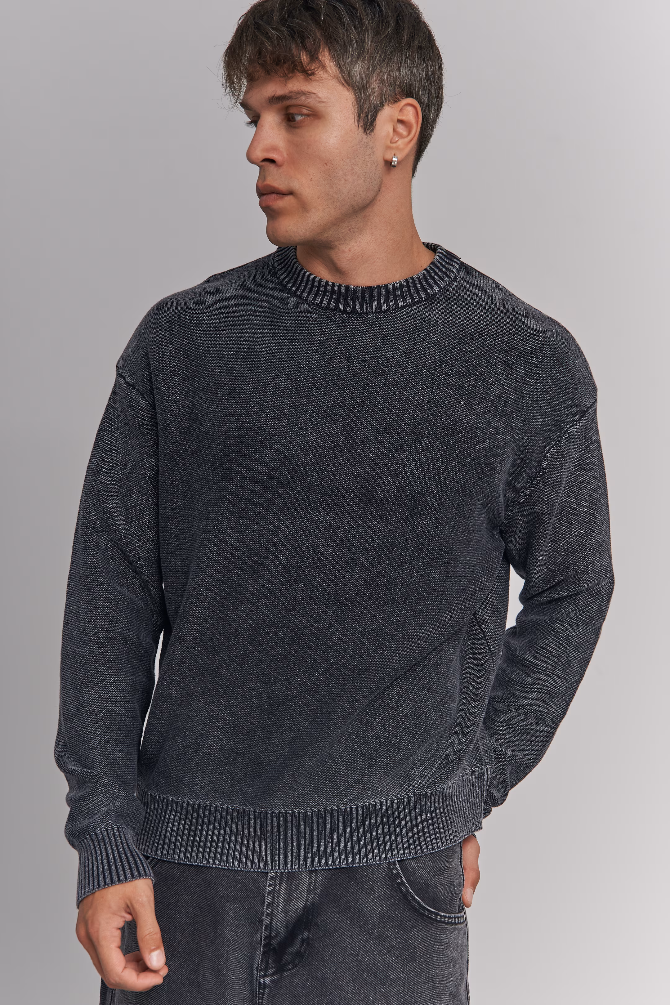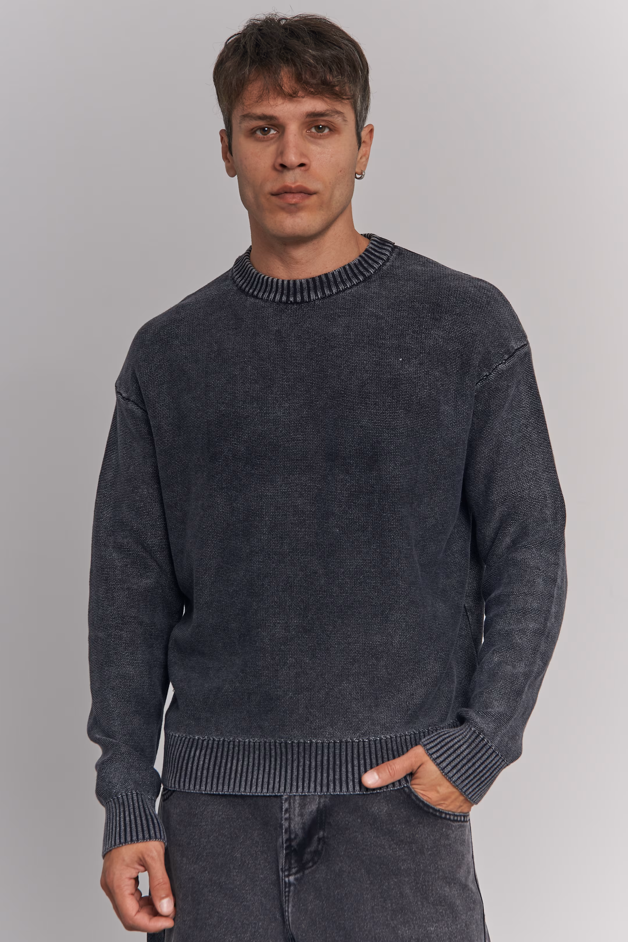 Knit Sweater Dark Grey Heavy Distress