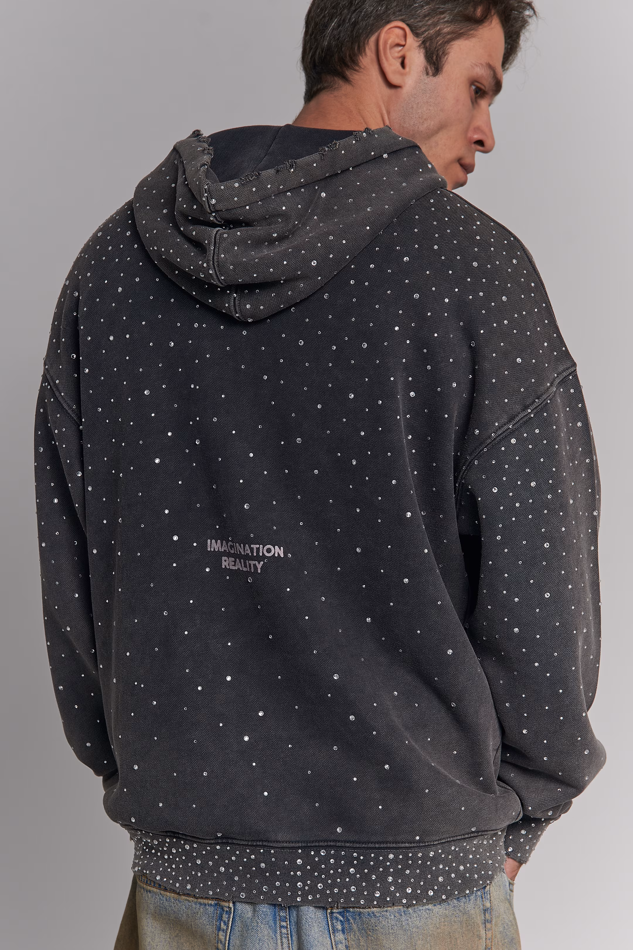 Hoodie Dark Grey All-Over Rhinestones